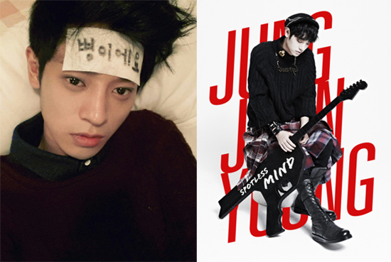 정준영은 30일 자신의 트위터에 “뻥이에요 아니에요 병이에요. 폭풍스케줄에 살짝 열오르는 중”이라는 글과 함께 사진을 게재했다.